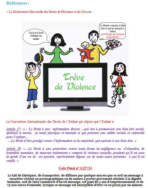 Lutter contre toutes les formes de violences à la télévision dont les enfants sont la cible particulièrement vulnérable